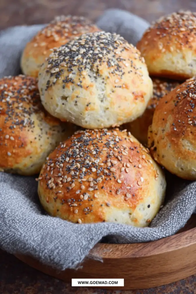 - Tjek for farve og sprødhed: Bagetiden afhænger af bollernes størrelse. De er færdige, når de er sprøde og gyldne på overfladen.