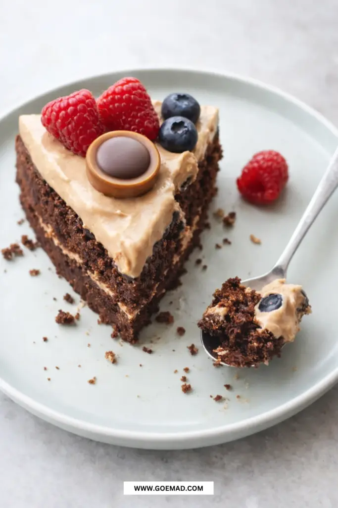 - Pynt og server: Top kagen med det resterende mousse og pynt med friske bær og Toffifee.