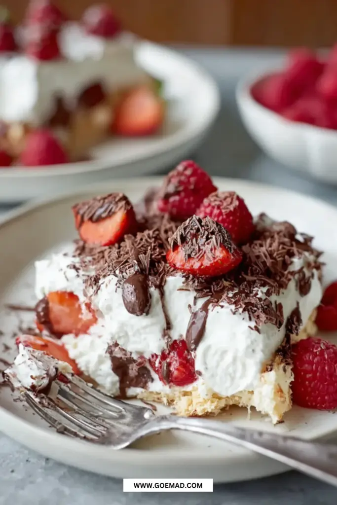 Flødebolle kage er en af de dessertklassikere, der aldrig skuffer. Denne opskrift er nem, kræver ingen ovn og giver et festligt resultat med fløde, bær og mørk chokolade.