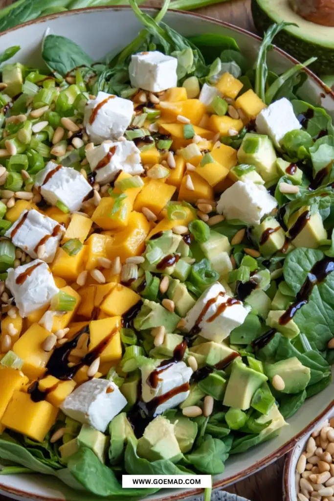 En mangosalat er en frisk salat med mango som primær ingrediens, typisk kombineret med grøntsager, ost eller nødder. Denne mangosalat indeholder avocado, spinat, feta og pinjekerner.