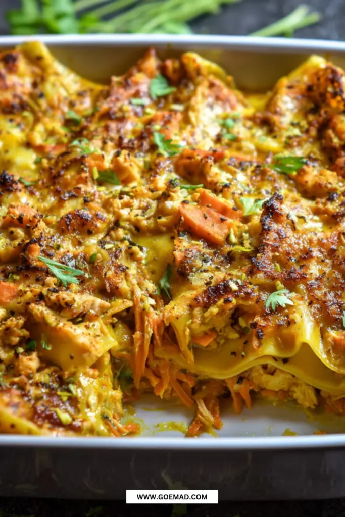 Kyllingelasagne er en variant af den klassiske lasagne, hvor hakket kyllingekød erstatter det traditionelle oksekød. I denne version tilsættes karry og kokosmælk, som giver retten et varmt, let eksotisk præg uden at gøre den kompliceret.