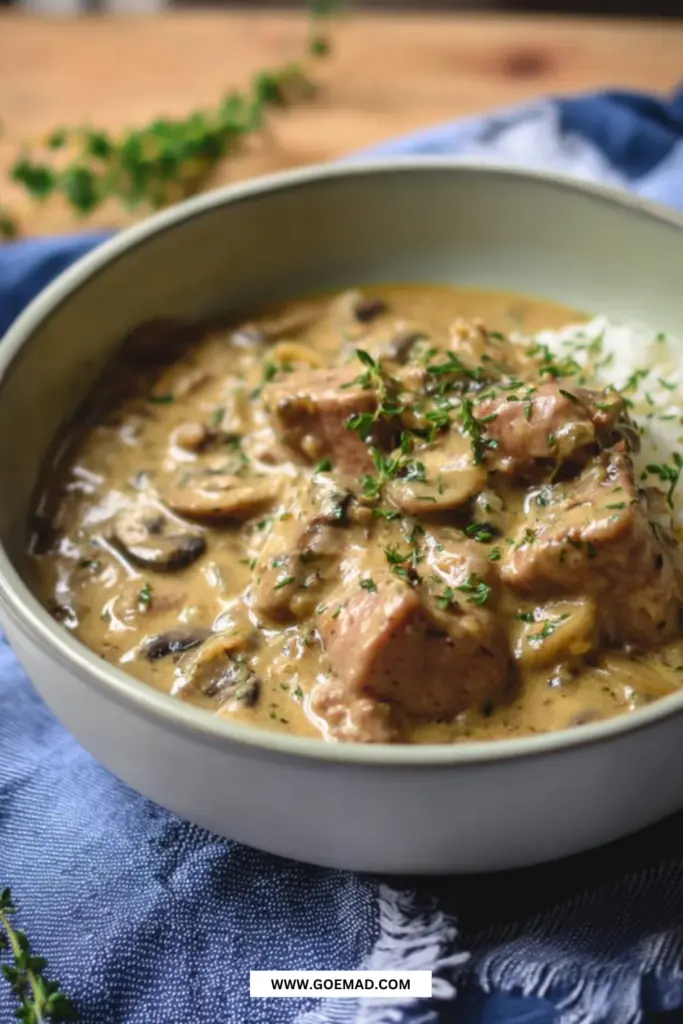 Svinemørbrad i flødesovs er kendetegnet ved den cremede, fyldige sovs, der adskiller sig fra tomatbaserede eller brunede gryderetter. Fløden giver en rund og blød smag.