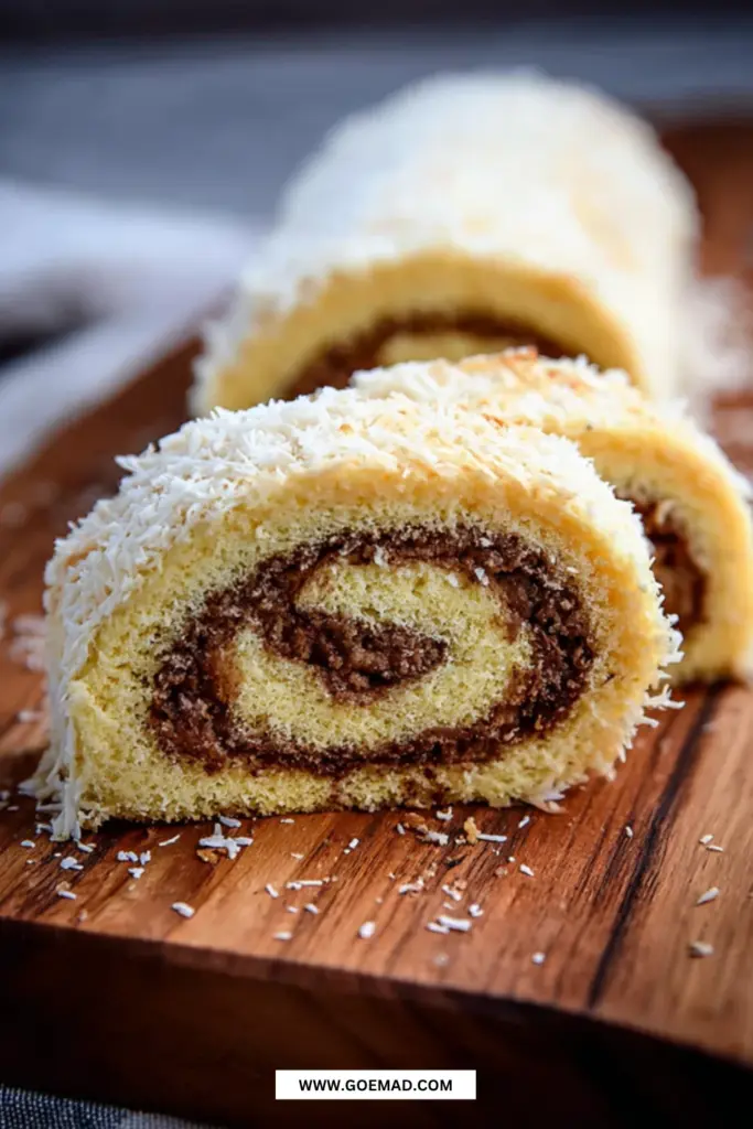 En drømmekageroulade er en klassisk dansk rouladebund toppet med det kendte kokosfyld fra drømmekagen. Kagen stammer fra den traditionelle drømmekage fra Brovst og er elsket i danske hjem for sin enkle, søde smag.