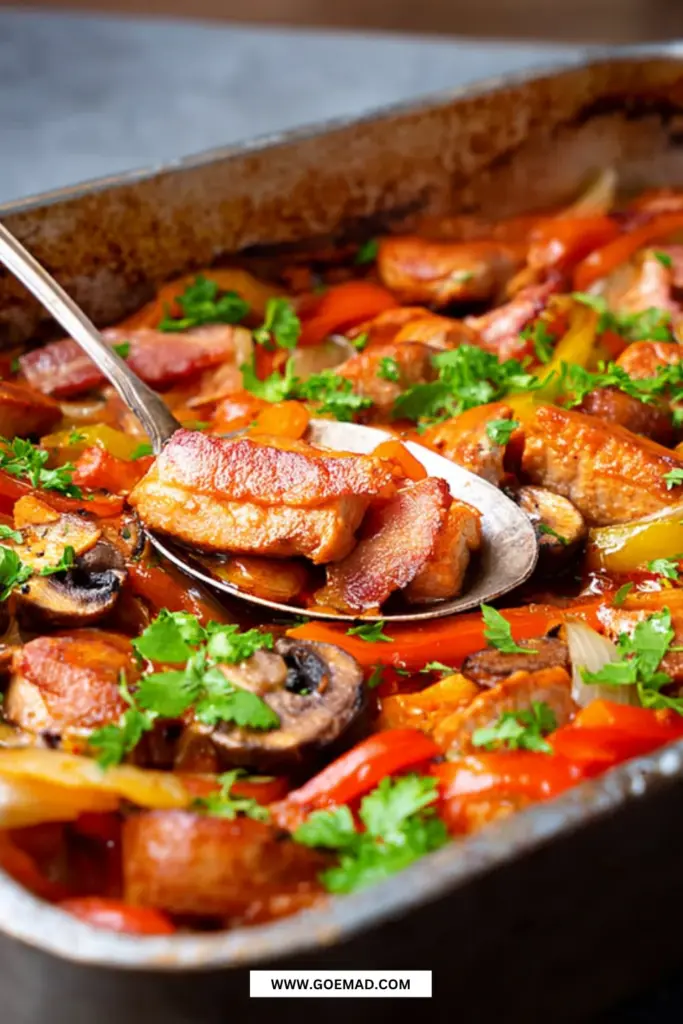 Få den bedste opskrift på mørbrad i fad med sprød bacon og cremet sauce. Perfekt til en nem hverdagsret med masser af smag.