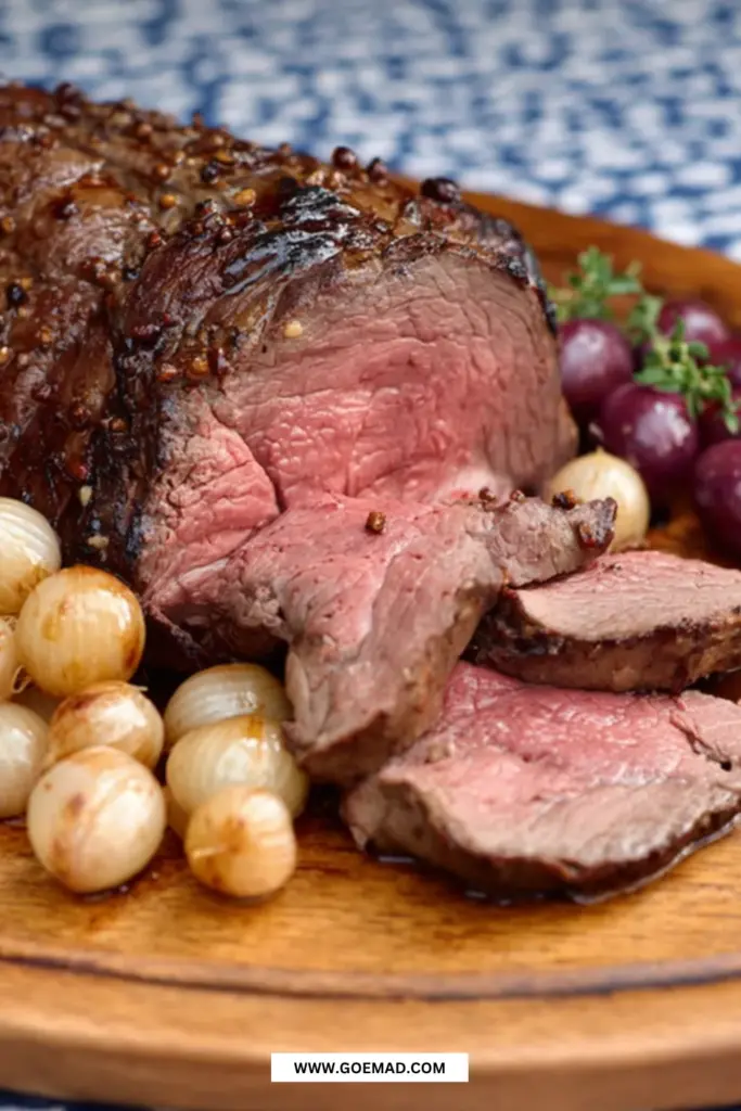 - Skær og servér: Skær roastbeefen i tynde skiver på tværs af kødet. Server med kartofler eller kartoffelmos, glaserede perleløg og den varme flødesauce.