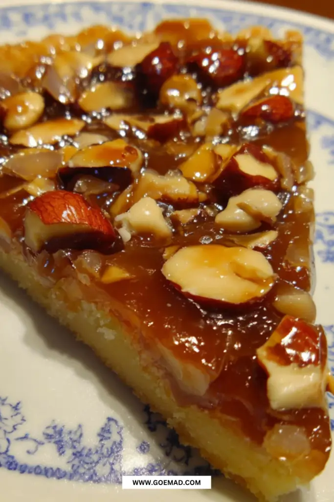 En toscatærte med marcipanfyld er en lav, tærtelignende kage med en saftig marcipanbund og en sprød karamel- og nøddetopping. Det er en smagfuld og nem variant af den klassiske tosca.