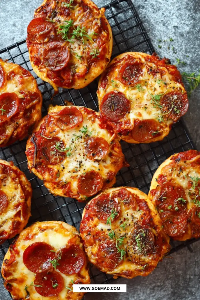 9. Servering: Lad pizzabollerne afkøle lidt, og nyd dem varme eller kolde. Opbevar i 2-3 dage eller frys dem ned.